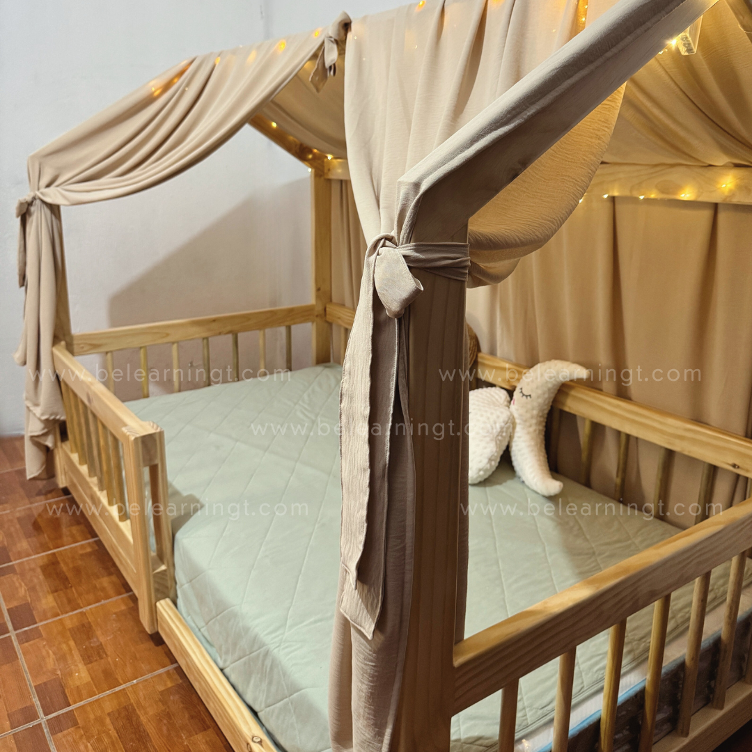 Material: 100% Madera Sólida de Pino Chileno + Telas de Algodón y Velvet de alta calidad.